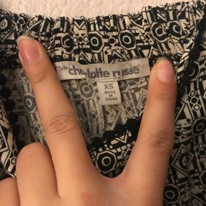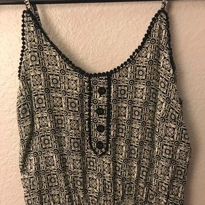 Cute geometric romper with adjustable straps. Has pockets and is very form fitting around the waist.