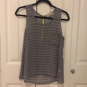 Black and white geometric shapes tank with green accent zipper in the back. Flowy and light.
