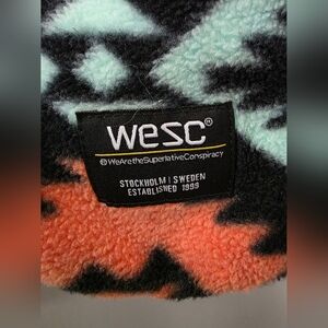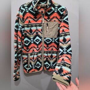 Stylish fleece jacket with geometric/aztec design. Features a practical chest pocket. Practically new. Only worn once! Men's small, women's medium