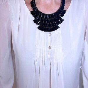 Elevate your style with our Geometric Black Crystal Statement Collar Bib Necklace. This exquisite piece is a harmonious blend of sophistication and bold design, perfect for making a memorable fashion statement.