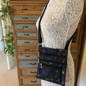 Geometric Four Pocket Crossbody Handbag – Black/multi