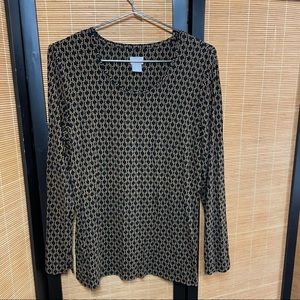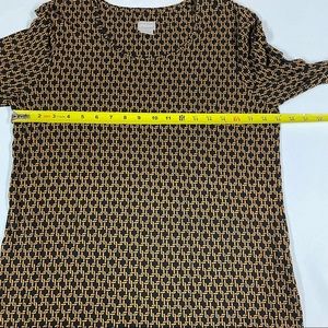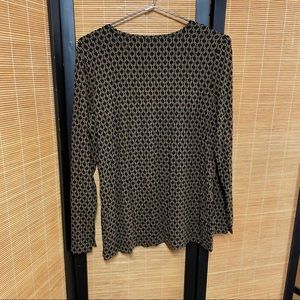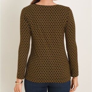 A chic geometric print gives this tee a design edge, perfect for wearing under a cardigan or jacket. It's designed for layering, in a comfortable, lightweight knit that you'll love to wear.