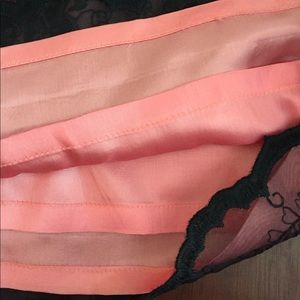 This lovely skirt features black lace over hot pink satin. Pairs beautifully with a black top or white blouse. Polyester. Made in America. Worn once- in perfect condition with no signs of wear. Fits small- More like a size 2 than a 6. 36" circumference at hip and 26" circumference at waist. 22" long