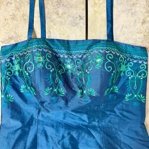 Geometrie Silk Blue Embroidered Mini Dress size 6 Cocktail Wedding Semi Formal