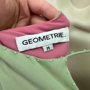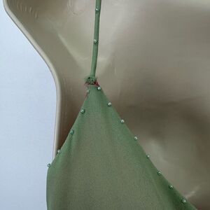 Geometrie Women’s Green Pink Y2K Floral Embroidered Dainty Bead Midi Slip Dress