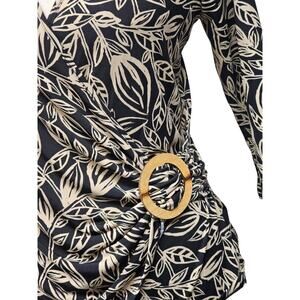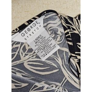 Georege Faux Wrap Womens Sz M Stretch Wood Buckle Office Dress Shirt Jersey Knit