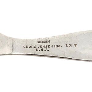 Georg Jensen Inc was a store known for Scandinavian imports located in NYC 1935-1968. This serving piece (#137) features a pointed blade and a slightly hammered finish.
