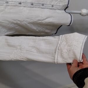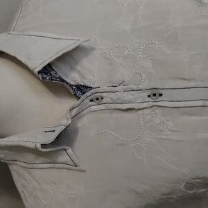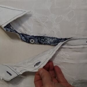 Georg Roth los Angeles Button Down Top white size large blue sequin embroidered