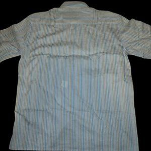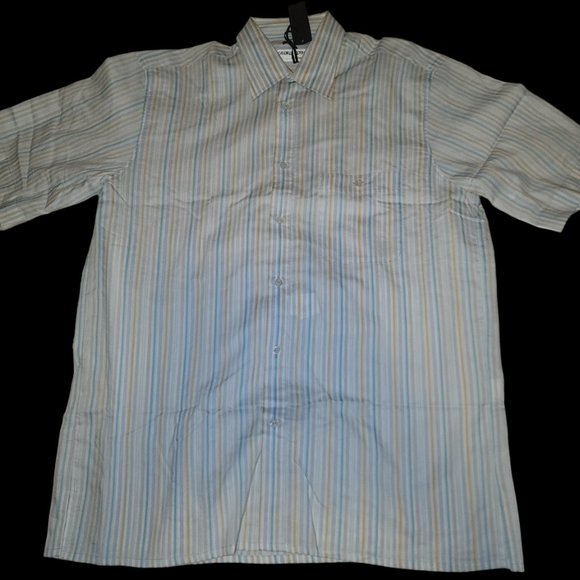 Summer Style with a Touch of History: This classic blue striped short-sleeve button-up shirt is from Georg Roth, a brand with a rich heritage in German design. This brand new with tags size XXL shirt offers a timeless look that's perfect for warm weather.
