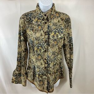 Georg Roth Long Sleeve Snap Front Floral Print Top Cream Purple Multi Size XS