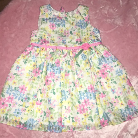 Dress perfect for a spring morning Sleeveless Built in liner Button back ribbon tie