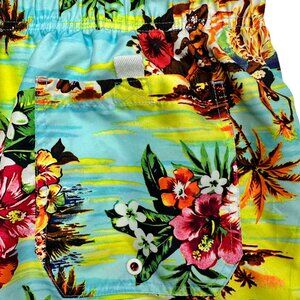 George Aqua Hawaiian Print Swim Trunks (XL/40-42)