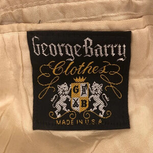 This is a pre-owned George Barry men's blazer. It is a two-button, single-breasted blazer with a notch lapel. It has two flap pockets on the front and one welt pocket on the chest. The blazer is fully lined with a cream satin lining. The blazer is in good condition with a small hole on the inside right chest area. (See last picture) The blazer is dry clean only.