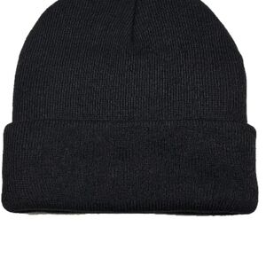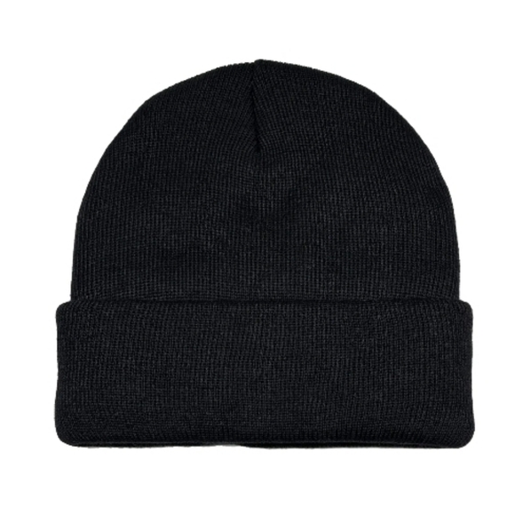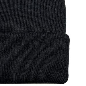 Warm ribbed knit beanie with a folded cuff. Simple silhouette for daily wear. Neutral black color pairs with any outfit.