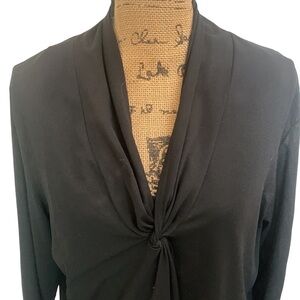 George Black Sheer Three Quarter Sleeve Twisted V Neck Blouse Size 20. In excellent condition. Versatile and lightweight sheer with tank lining. Slightly high low hem.