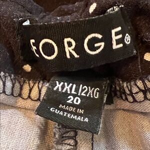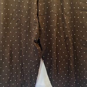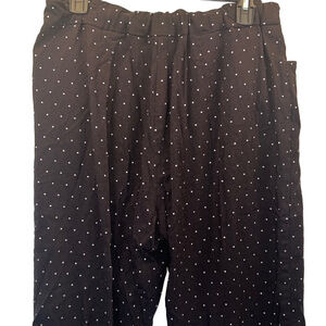 (T16). Capris Pant, Chic black fabric with white polka dots. Ideal for everyday style. Size XXL, Waist 16” Stretches to 21” Elastic Waist, Length 32”, Inseam 21.5”, Front Pockets, Gently Used