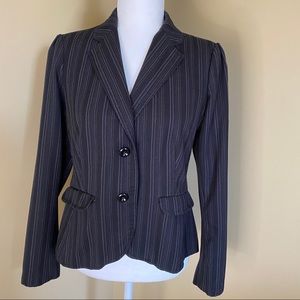 Gray striped black blazer.