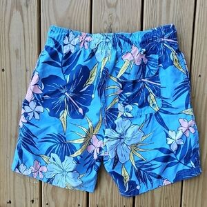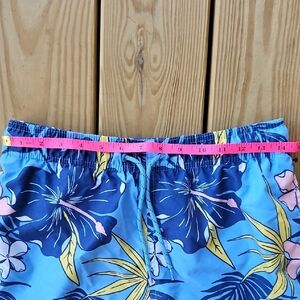 George Blue Tropical Swim Trunks with Pockets Mens Small