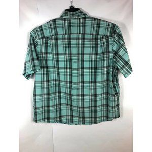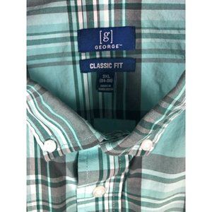 George Classic Fit Men's 3XL Button Up Short Sleeve Green Black Cotton Shirt A17