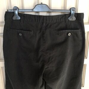 Elevate your casual style with these pre-owned George cotton pants. The solid black color and wide-leg design make them a versatile addition to your wardrobe, perfect for any casual occasion. The flat front and zippered closure provide a sleek and modern look, while the cotton material ensures comfort throughout the day. This pair of pants features pockets for convenience and practicality. The size is a regular fit, with a waist size of 34 inches and an inseam length of 30 inches. The pants are made of cotton fabric, ensuring durability and long-lasting wear. Add a stylish touch to your wardrobe with these George cotton pants, an essential piece for any fashion-conscious man.
