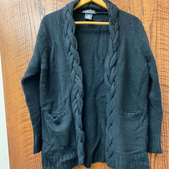 Like new George Designs by Mark Eisen academia professor teacher cashmere open front black and camel cardigan 2 pack. EUC, great shape, size XL, lambs wool, Angora, cashmere blend, front pockets, braided collar, see pictures for details.