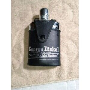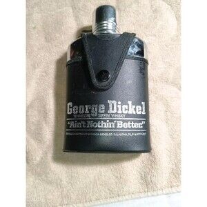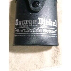 The George Dickel Tennessee Whisky Leather Wrapped Glass Flask features a black color with the brand name "George Dickel" prominently displayed. The set includes a glass flask wrapped in leather with the phrase "Ain't Nothin Better" engraved on it. Perfect for whiskey lovers looking for a stylish and practical way to enjoy their favorite drink on the go.