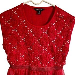 George Girl’s Dress Size 6. Red with Sparkle and Lace. 100% Polyester.