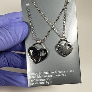 16" Silver Tone Mother & Daughter Heart Pendant Necklace Set With Extender NWT