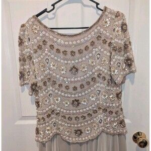 George F. Couture Size 14 Cream Silk Blend Mother Of The Bride Glass Beaded Gown