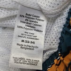 George Floral Green Orange Red Swimshorts 92% Polyester 8% Spandex Sz M 32-34