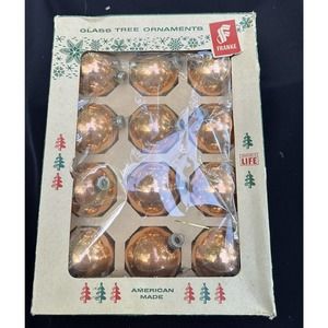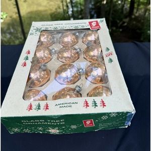 George Franke Gold colored mercury glass Christmas ornaments /Original box -Ch3