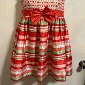 George Girls Colorful Sleeveless Dress Size 8 Polka Dots Stripes Holiday Party.