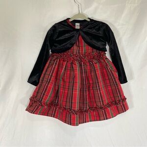 George Girl’s Ruffle Christmas Plaid Party Dress w/ Velvet Bolero