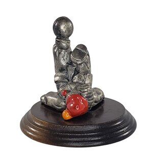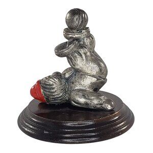 George Good Pewter Clown Figurine Vintage 1985 On Wood Base Playful Quirky