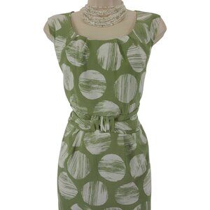 George Green Polka Dot Sage Circle Print Sheath Dress Size 14 Office Summer