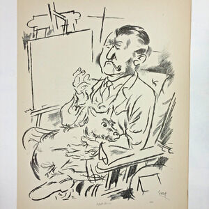 George Grosz "Self Portrait" Art 1930s Vintage Print Treasury Collection Sketch