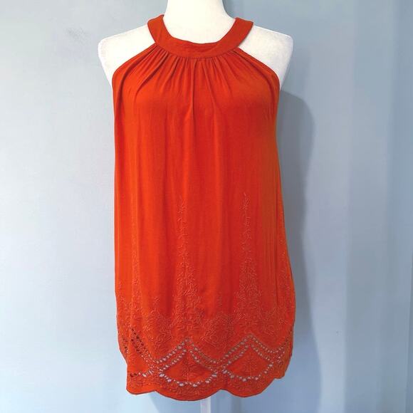 George halter top with embroidery and eyelets. Women's size M orange. Tag was removed so I don't know fiber content, it is soft.