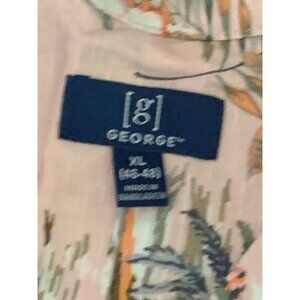 Embrace the tropical vibe with the George Hawaiian Aloha Shirt in pink XL. This lively shirt featuring tropical flowers and toucans is made from soft, comfortable rayon and comes with a tag attached.