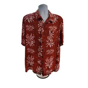 George Hawaiian Shirt 2XL Red Pineapple Print Button Front Aloha Camp Resort