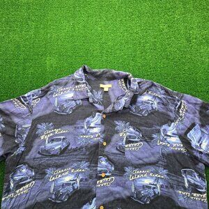 George Hawaiian Shirt Mens XL Blue Button Up Beach Tropical Classic Island Rides