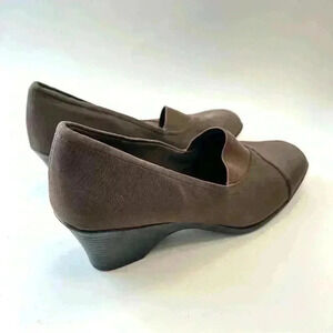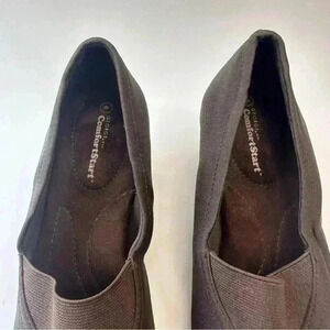 George Shoes Heels Womens 6 Comfort Start Loafers Pumps Wedge Black Fabric Slip On. In great preowned condition.