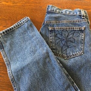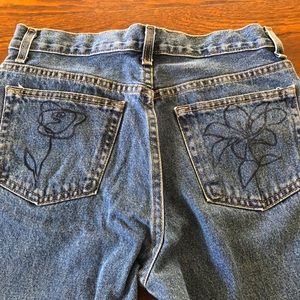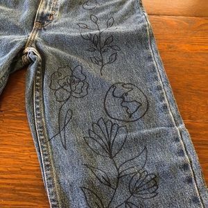 These Jeans were part of an art project. There are designs that have been added with fabric marker and are permanent.