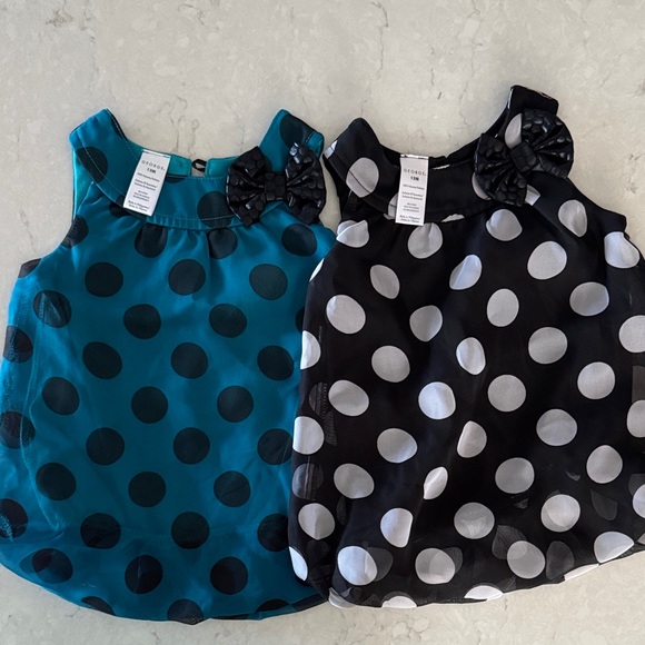 Charming polka dot tops by George. Features teal and black colors. Perfect for playful days.