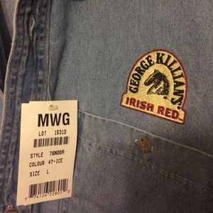 George Killian's Irish Red Jean Button Up, new with tags, size large, made in Canada