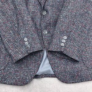 Vintage George Lawrence Men's Blazer in size 42. This classic career jacket comes in a red, black, and grey wool tweed check pattern. Note: No size tag, see measurements for fit.