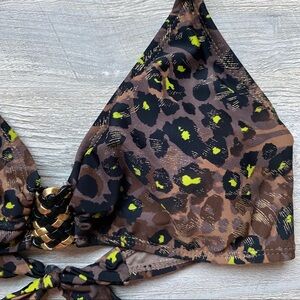 George Leopard Bikini Swim Top Brown Sz Small