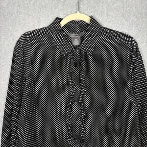George ME Shirt Womens XL Black White 100% Silk Dolka Dot Blouse Ruffle Button Corp Career Work Office Business Church Classic Preppy