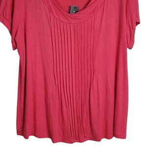 George Mark Eisen Pullover Twist Top Pink 2X Pleated Scoop Neck Short Sleeve NWT