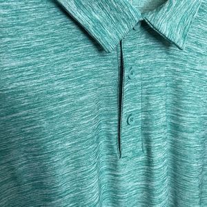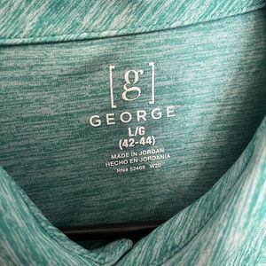 George Mens Aqua Blue Green Polo Golf Shirt Striped Polyester Short Sleeve VGC