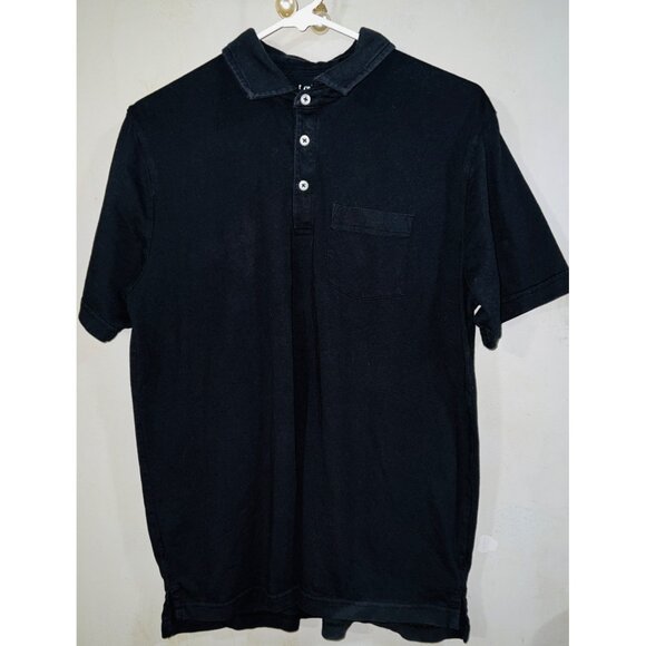 George Men's Black Collared Polo Shirt Medium Cotton & Polyester Button Front